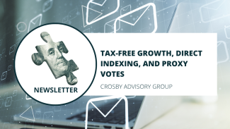 Disclaimer: Crosby Advisory Group, LLC is a registered investment advisor. This newsletter is for general knowledge and is not intended to be individual investment advice. Investing involves risk including potential for loss. Understand all risk and fees before investing. NMD Insurance is affiliated with Crosby Advisory Group, LLC.